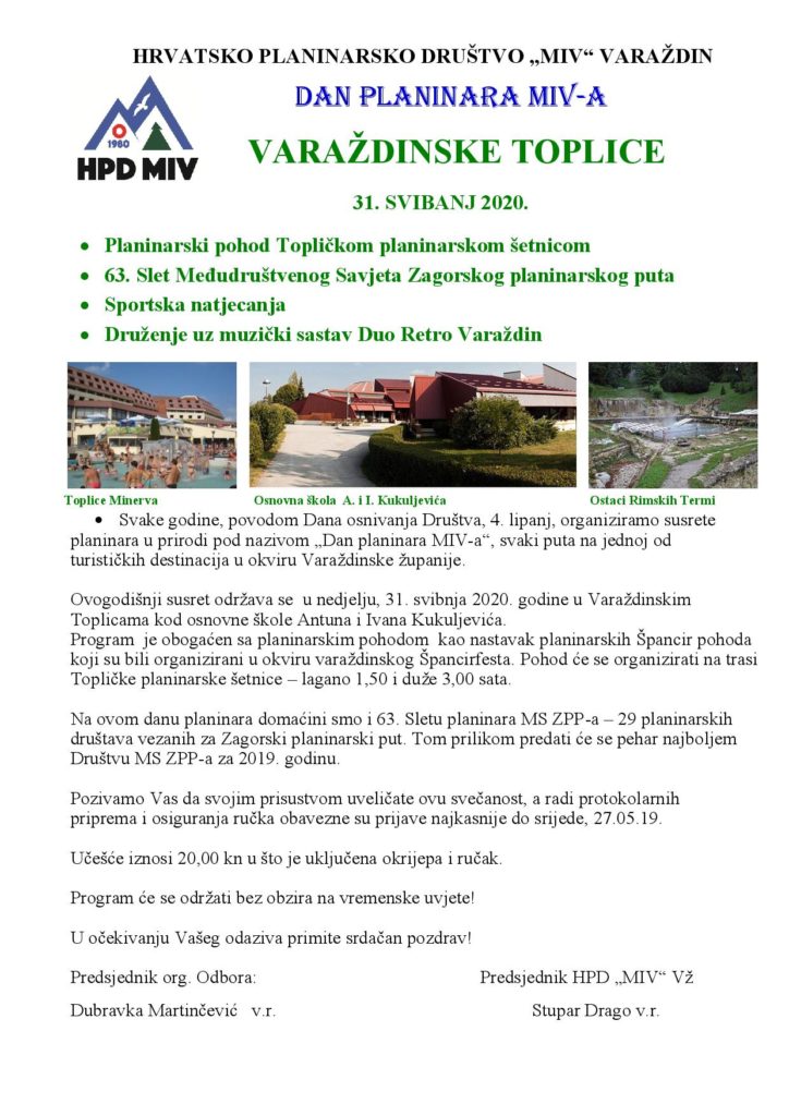 Pozivamo Vas na DANE PLANINARA MIV-a